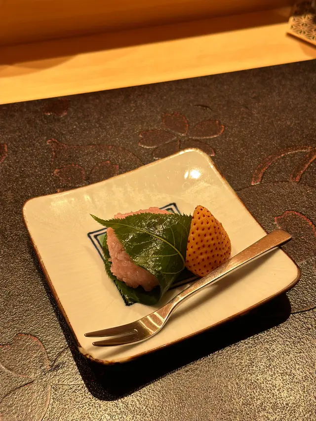 🌸櫻餅配淡雪士多啤梨,入面是紅豆餡,好有日本和菓子嘅感覺。