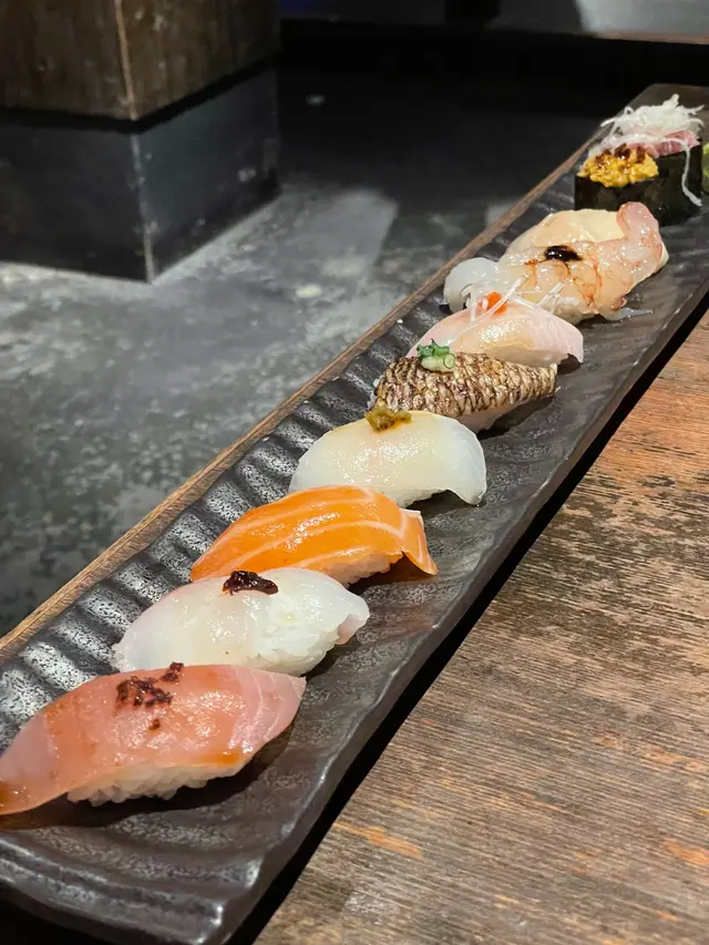 特上壽司有拖羅、海膽、牡丹蝦、赤貝、帆立貝、三文魚等等,長長的碟子,氣派非凡。壽司握得不錯,結實不鬆散。當中我最愛帆立貝,又厚又大件。