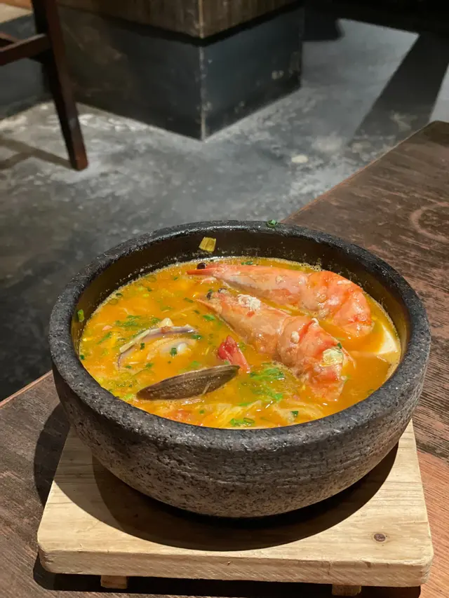 味道有驚喜的蕃茄海鮮石頭湯,比想像中還要好吃。湯頭美味,又香又甜。大蝦好大隻,但不算好新鮮。