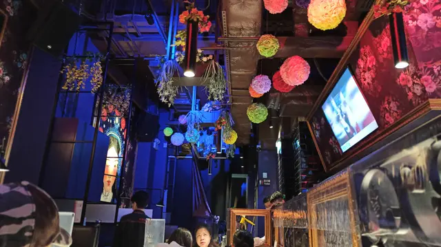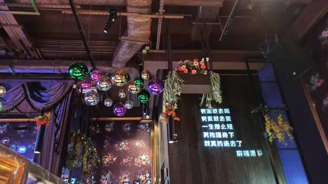 以紫色及黑色為底色的裝潢,配上色彩繽紛的彩燈及花球,以及醒目的大油畫,光影交錯,每次踏足都覺得甚為美觀又耐看!