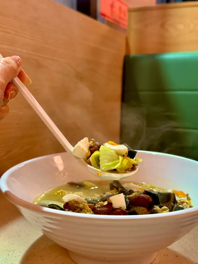看上去已經感覺到份量十足,咸蛋、皮蛋切得大大粒吃落特別有口感,和黃芽白融為一體。大廚為令味道更鮮甜,更加了肉碎,口感豐富之餘又好味。