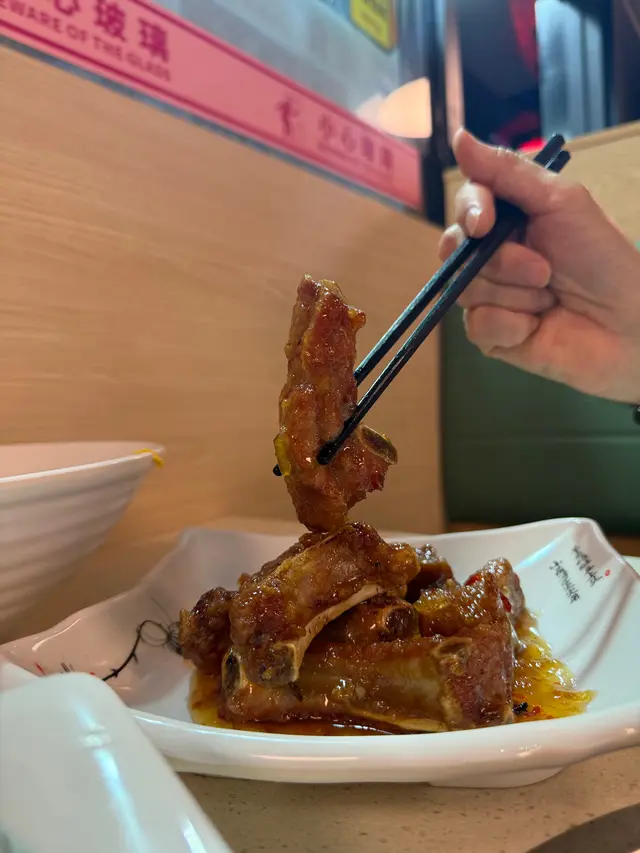 拎上手非常熨,一字骨炸到酥脆有嚼勁;入口鬆化,咸甜交錯的美味在咀巴中漫延,肉排沾滿甜香柚子蜜,將油膩感化解至無形,好食到連骨都輪埋。
