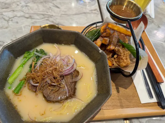 沒有誠意的台灣菜 Prima.eat等级12025-08-15574 浏览 关注 下午茶去試下,見話係招牌牛白湯牛肉麵,好似好勁,於是點咗!其實根本只係超市即食拉麵,個湯底只係即食拉麵嘅味精湯😵💫仲要食得出係cheap牌嘅即食拉麵🤮🤮🤮不會再幫襯。。原本驚叫兩個餐唔夠食,預下午茶份量都係輕膳,所以本身諗住叫3個餐2個人食,好彩無叫多個,止蝕左。。如果唔係,今篇個食評會更長🥱講返另一個炸地瓜同炸雞,不過不失,炸雞個粉醬過厚,個上盤設計都怪怪地,個醬係淨碟野上面,頂住拮食物😮💨1以上食记乃用户个人意见 , 并不代表OpenRice之观点。赞好分享沒有誠意的台灣菜 玥 https://s.openrice.com/QrLT06lvT00检举 张贴 评分1味道2环境2服务2卫生1抵食用餐途径堂食