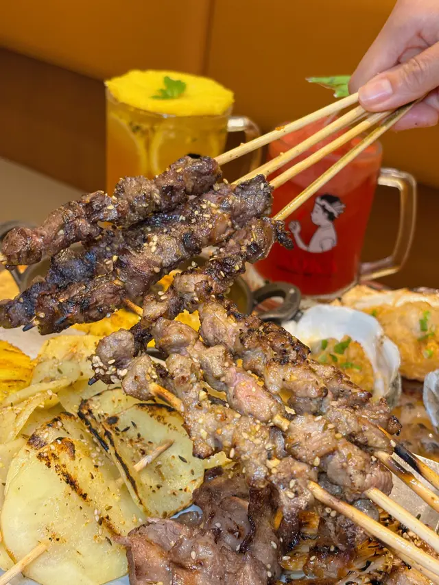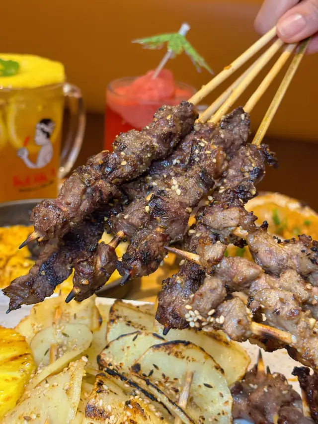 羊肉串帶有微微孜然香氣,肉質鮮嫩多汁,完全無羊羶味,值得一試!