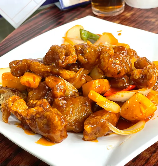 菠蘿咕嚕肉味道酸甜、香脆,非常開胃且多層次。它的外皮酥脆,肉質多汁,並且有明顯的菠蘿香味以及酸甜醬汁的鮮明味道。