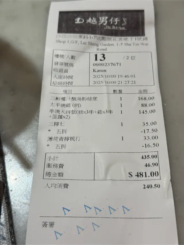 呢五道菜式各有特色,酸辣鮮香嘅越南風味真係好正!三鮮椰汁酸湯粉絲煲同串燒大拼盤係必試之選,湯底濃郁同燒烤香氣令人回味;太平燒雞皮脆肉滑,飲品三檸七同薄荷青檸梳打清新解膩。整體嚟講,越男仔嘅菜式新鮮、環境舒適,價錢親民,好啱朋友或家庭聚會。