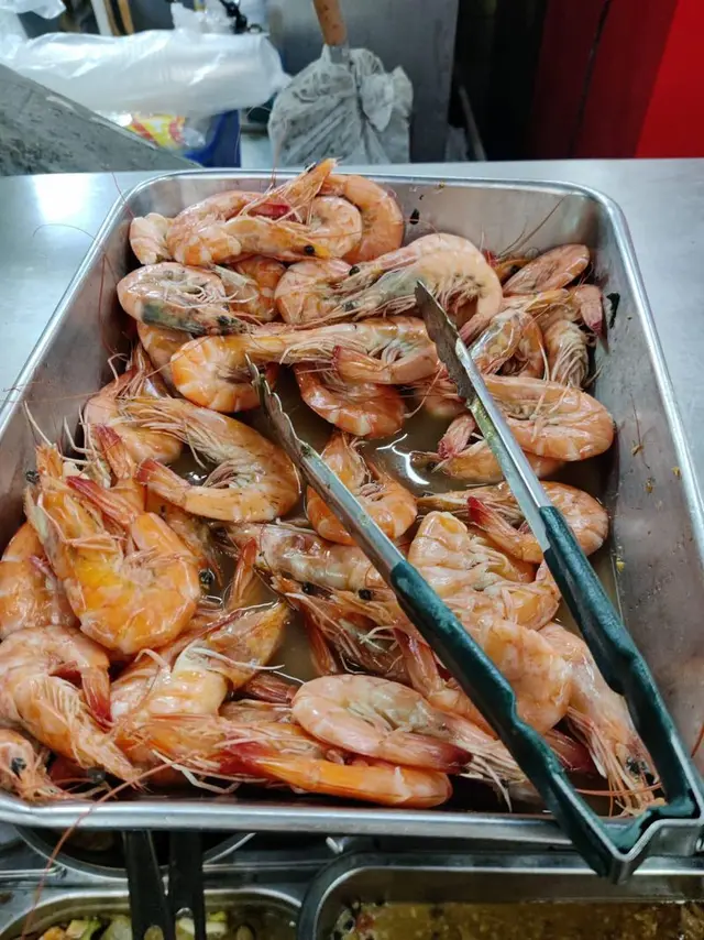 自助餐價格為$45,但下午一點多去的時候,已經沒有什麼新的菜餚補充。湯要自己裝,裝完就沒有了。期間有一盤蝦上桌,一上來,地盤工人一人就夾走了三分之一。