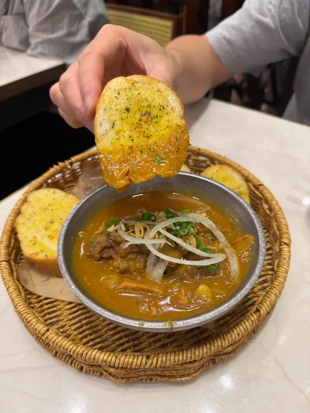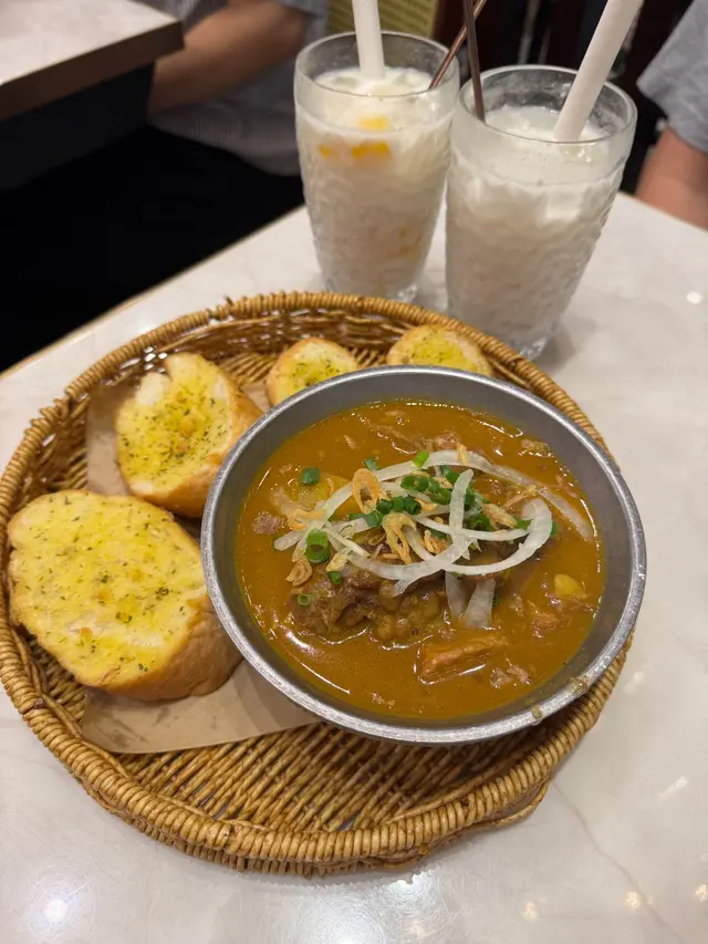 之後來到重頭戲西貢咖喱牛腩配法包,牛腩炆得入味柔軟,咖喱香濃不嗆口,用法包沾著汁撕來吃,非常滿足。