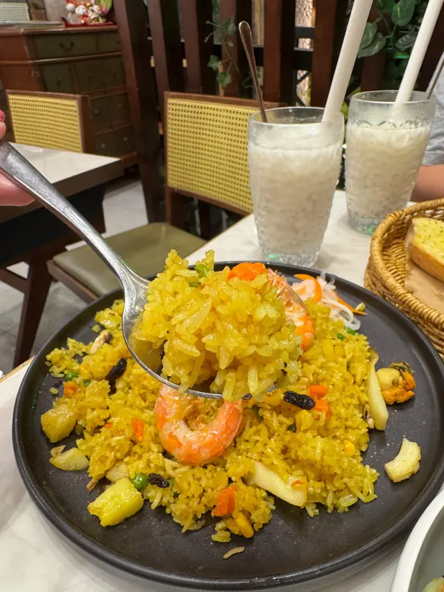 炒飯色香味俱全,粒粒分明的飯粒,帶著越式菠蘿果香,配上蝦仁同腰果,酸甜開胃。