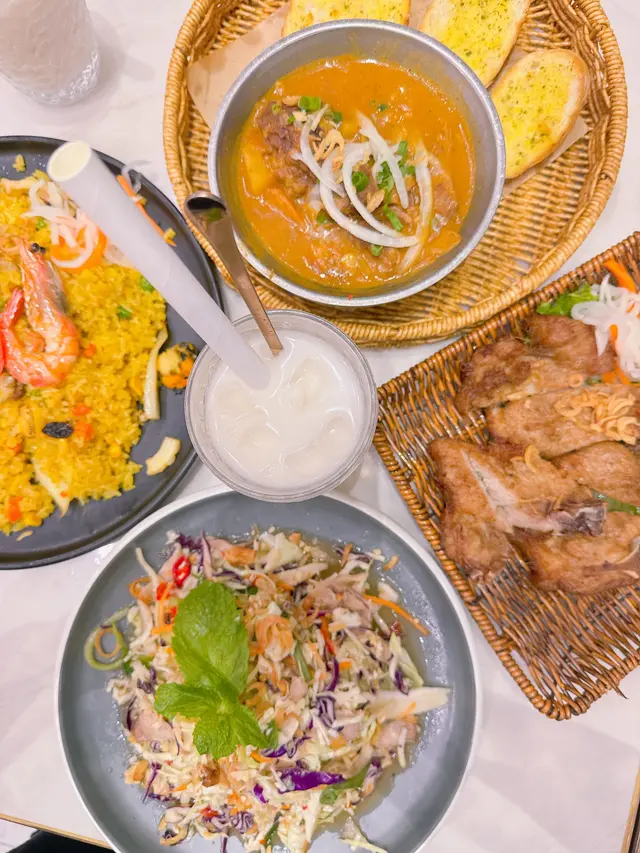 餐廳氣氛充滿東南亞風情,木系裝潢配上暖黃燈光,坐得相當舒服。入座後點了 美味2人餐,份量剛剛好,菜式選擇豐富。