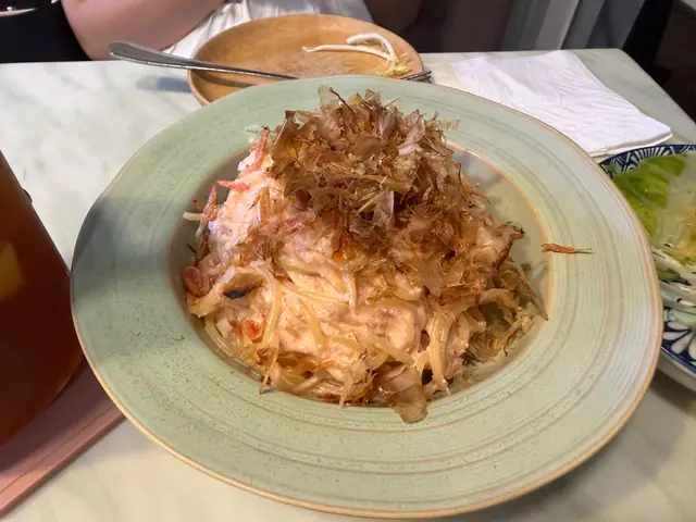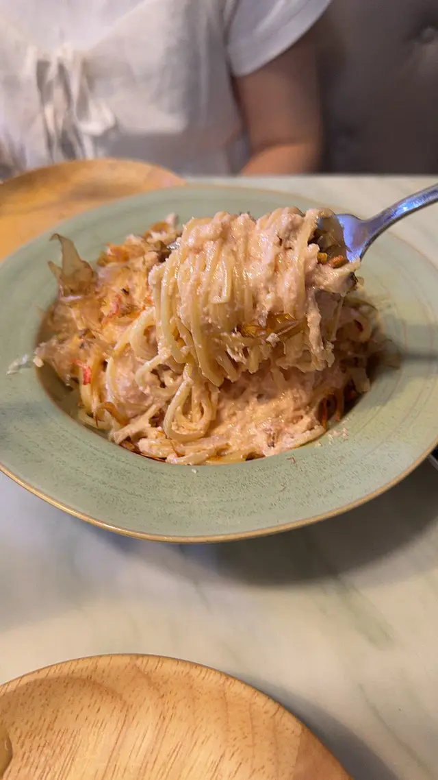 這份意粉堪稱創意與美味的結晶。明太子的鹹鮮與蟹肉的清甜相互交織,在奶香濃鬱的醬汁包裹下,每一根意麵都吸飽了風味。頂部鋪陳的柴魚片隨著熱氣輕舞,增添了獨特的香氣與口感層次,每一口都是鹹鮮、奶香與海鮮風味的曼妙共舞,意麵的嚼勁也恰到好處,是主食中的驚喜之作。