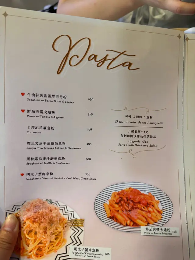 主食:明太子蟹肉意粉(升級套餐)—— 鹹鮮與奶香的曼妙共舞
