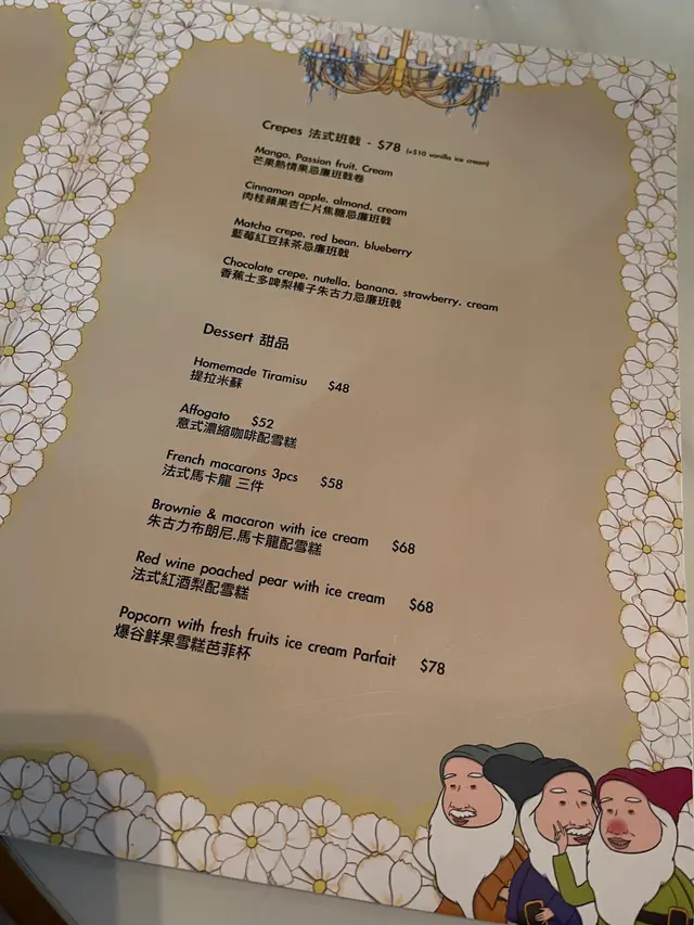 法式宮廷風Cafe KMWY等级42022-10-23160 浏览 关注 呢間cafe bookmark咗好耐終於有機會試下,宮廷風設計相信係女仔都會鐘意,甜品好精緻,法式班戟必食❗️ 美國保濕豬鞍架配蜜桃芥末籽醬 $188保濕豬鞍用咗新嘅保濕技術去鎖住肉汁,令到肉質可以保持鬆軟,食落口感更嫩滑,咁當然廚師嘅火侯都掌握得好好,食落完全唔會柴,無論配蜜桃抑或芥末籽醬都好夾😋香蒜辣味鮮馬拉蜆欖油扁意粉 $128蜆肉飽滿肥美,而且都幾鮮甜,配埋香蒜同辣椒嚟吊一吊味就啱晒,味道更加豐富之餘又唔會遮蓋蜆嘅鮮味👍🏻肉桂蘋果杏仁片焦糖忌廉班戟 $78+$10班戟皮好軟熟,熱烘烘嘅肉桂同蘋果,配埋雲呢拿雪糕食,一凍一熱,加埋滿滿嘅杏仁片,口感好豐富,擺盤仲好靚😍以上食记乃用户个人意见 , 并不代表OpenRice之观点。赞好分享法式宮廷風Cafe INN - I’m Not Nothing https://s.openrice.com/QrLT0T01600检举 张贴 评分4味道4环境4服务4卫生4抵食用餐途径堂食