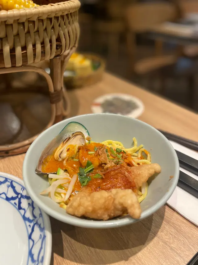 ✅麵食。迷你軟殼蟹青口黃咖哩撈麵。黃咖哩入口帶甜,加埋油麵的滑溜,成個配搭唔錯👍🏻 青口大隻,但略嫌炸軟殼蟹的粉漿太厚😳