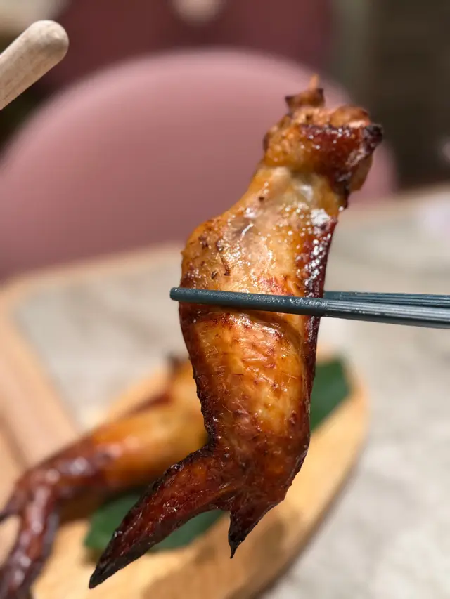 全翼醃香茅+椰糖+魚露,炭火烤到皮焦糖化「咔啦」響!一咬汁水沿指縫流,香茅清香+椰糖微焦甜,2隻不夠4隻剛好!
