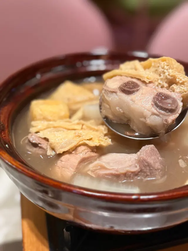 新加坡風味黑胡椒爆香,排骨煨到入口即爛!湯底白胡椒辣到流汗,卻越喝越上癮,油條一浸直接升天!
