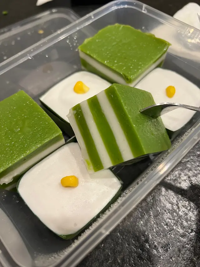 甜品有泰式椰汁糕同斑蘭糕每樣三件
