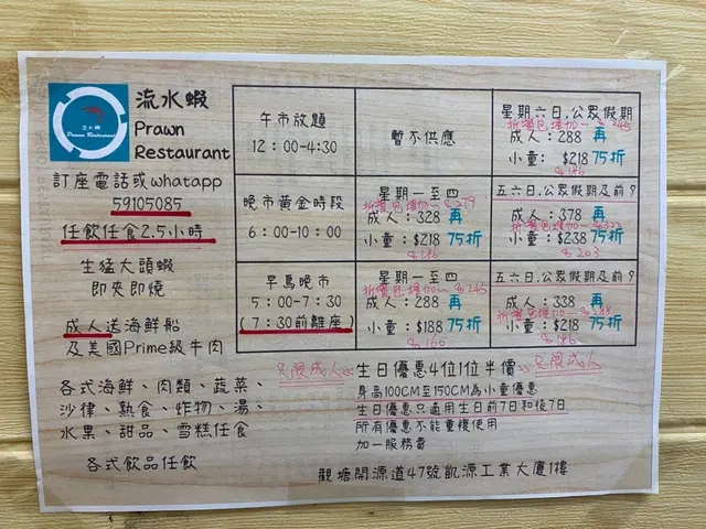 流水蝦當然主打流水蝦。即係自己可以係個位隔離魚缸度即夾即燒生猛大頭蝦,自己用夾夾啲蝦上黎,先放喺冰上面整暈佢,之後先燒。