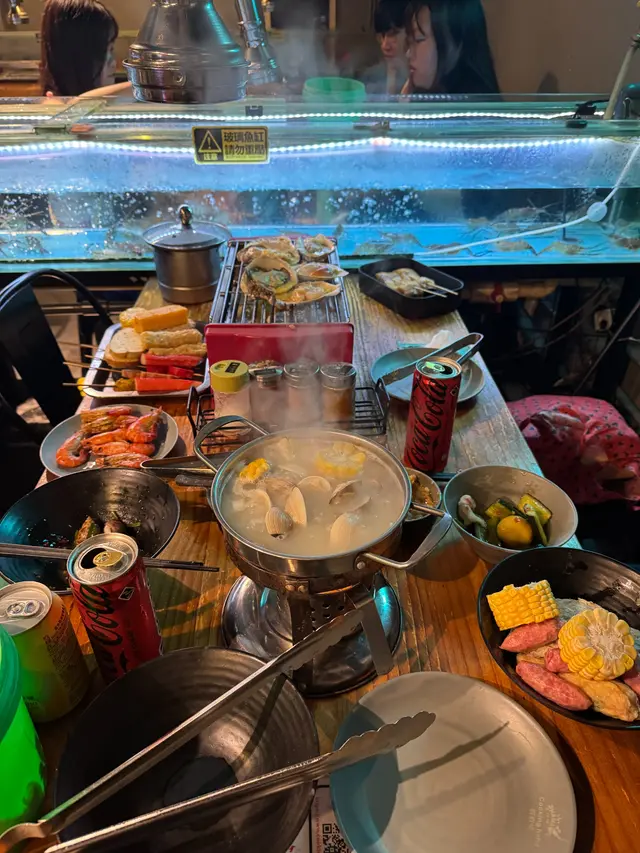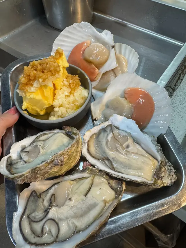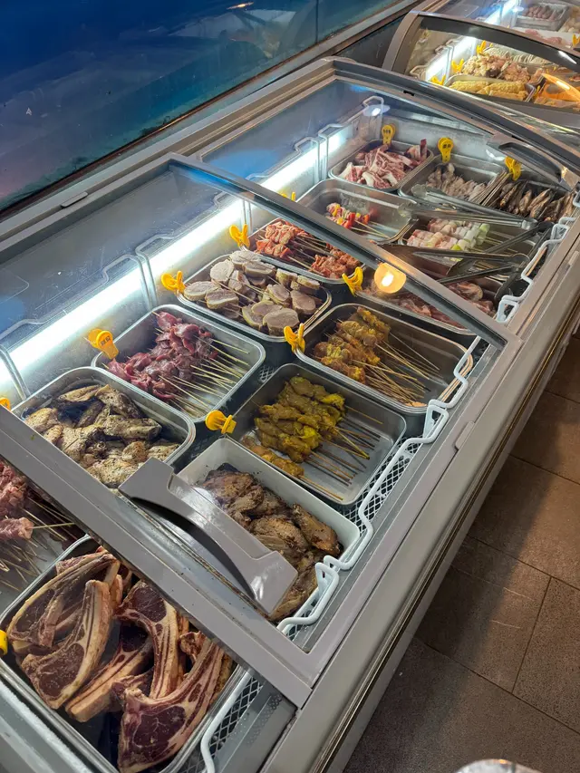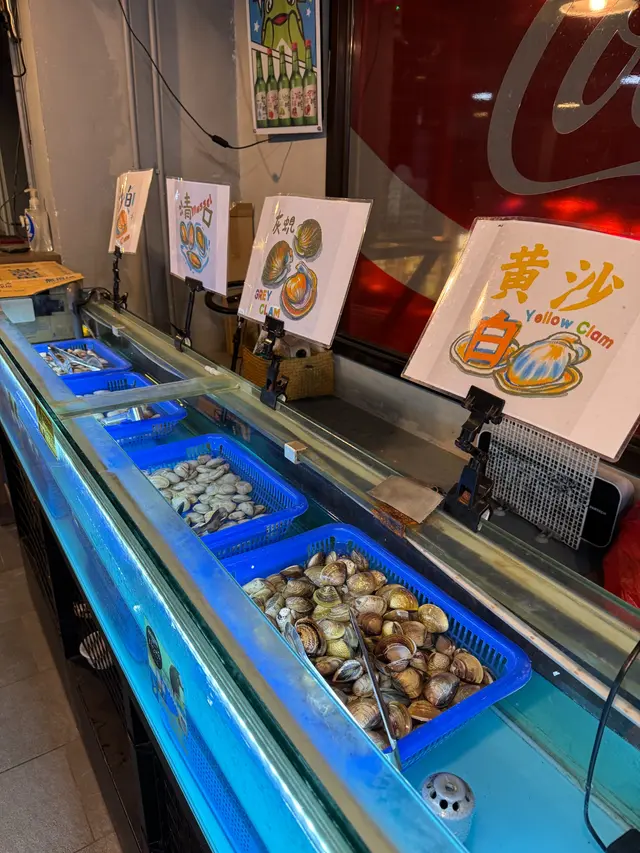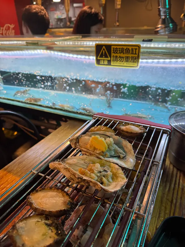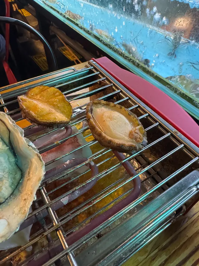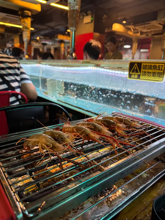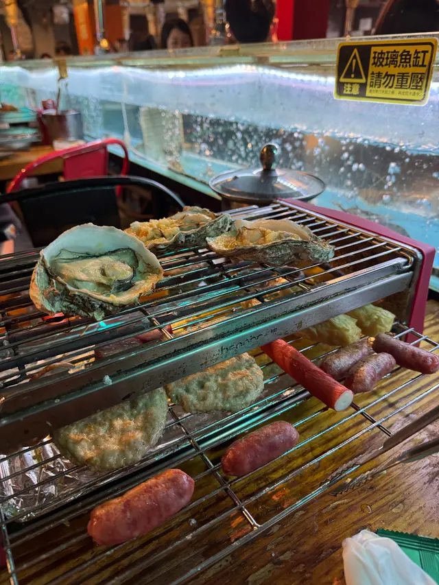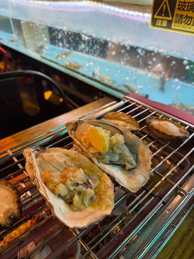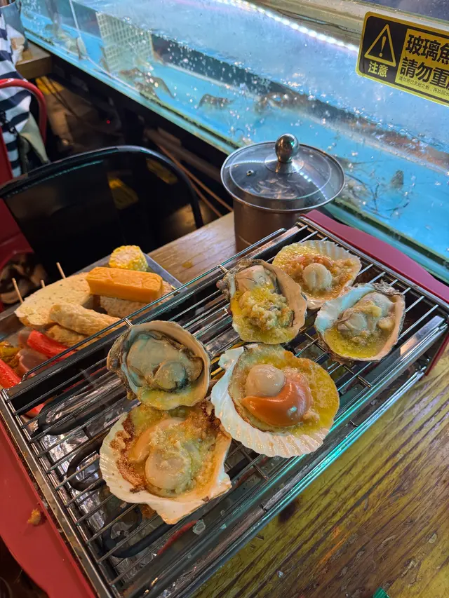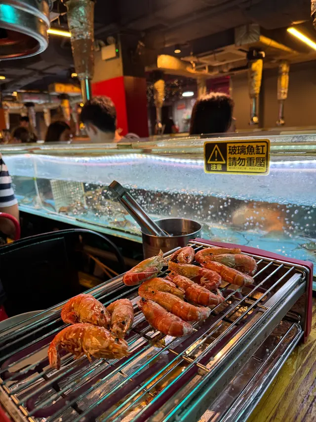可以選擇新鮮的海鮮,如鮑魚、元貝和新鮮魚,還有各式各樣的串燒,隨意挑選喜歡的口味。