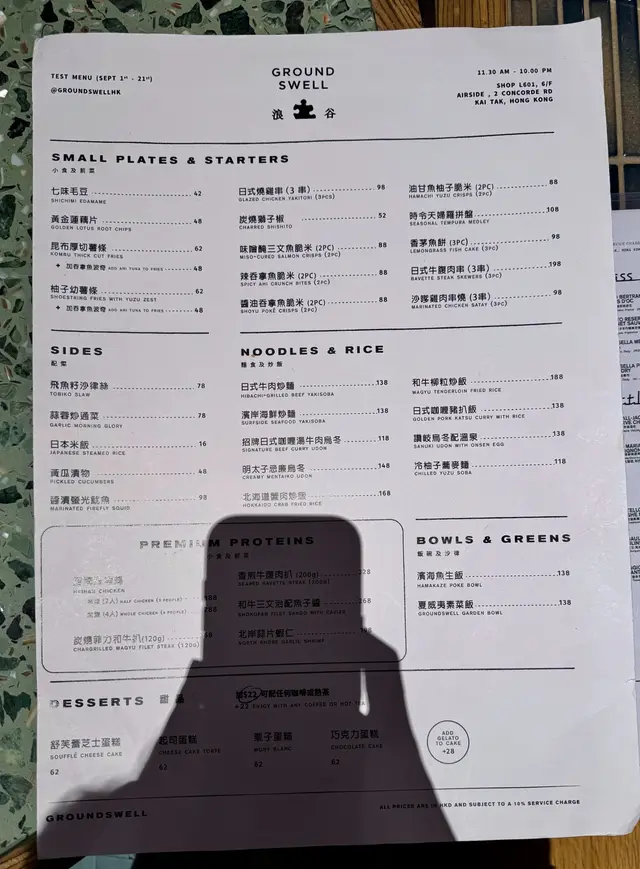 整體來説,這間餐廳的食物幾有新鮮感,不少菜式及味道是其他餐廳未嘗過的。雖然有些菜式的味道值得斟酌,不過也有不少佳作;加上當晚客人不多,座位很寬敞,店員服務非常有禮。在場有一位(疑似)室內衝浪教練在練習/表演花式,算是這晚用膳體驗的bonus。