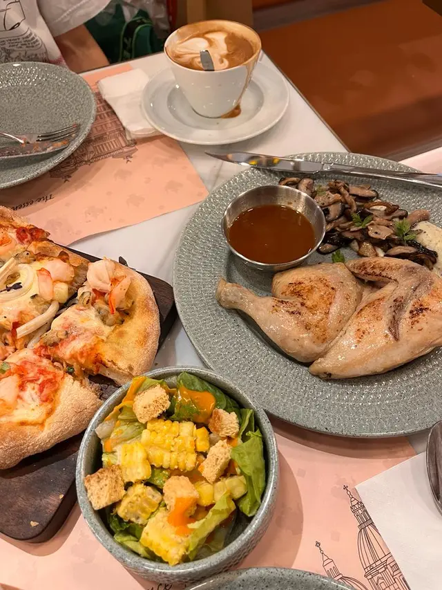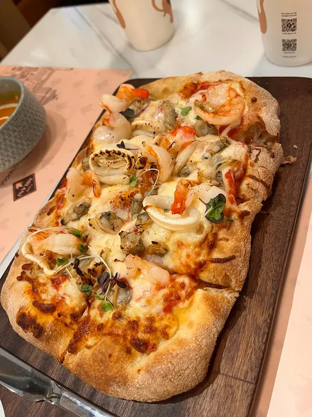 香辣海鮮羅馬薄餅 (可以走辣) 配甘荀薑湯 + Latte (S) $183
