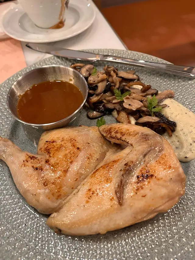 蜜汁燒春雞配松露薯蓉及蘑菇 配粟米沙律 + Cappuccino (S) $183