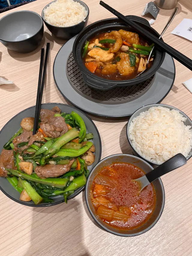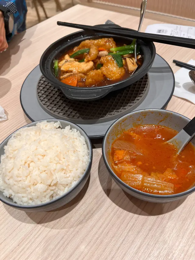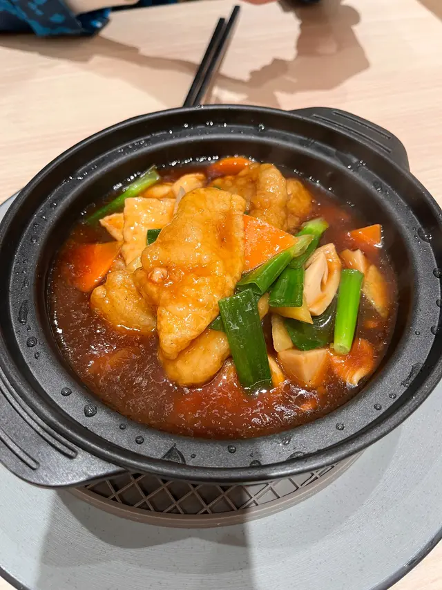 這個煲仔菜幾乎每檯客人都有叫, 認真熱門。值得一提的是這個煲提供的是豆腐而非豆卜, 口感較為嫩滑, 非常好吃。魚柳是先炸過的, 就像粟米斑塊的那款魚柳, 配上鹹香的醬汁, 很好下飯。除了豆腐和魚柳這兩款主食外, 還有少量的大蔥、蘿蔔和草菇, 更為惹味。