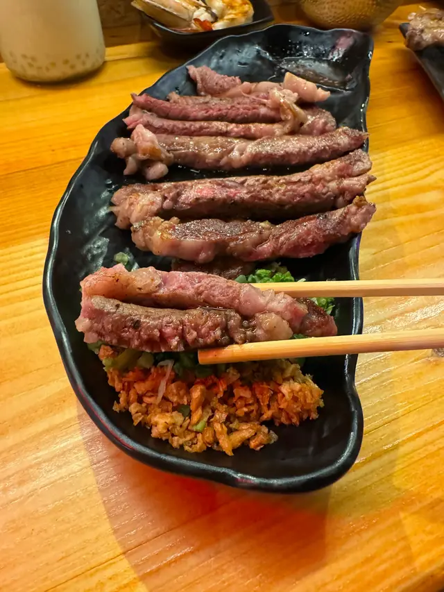 五成熟剛剛好,嫩滑質地為菜式增添了一種令人愉快嘅口感,調味和火候也控制得很好。滿滿的炸蒜粒和蔥花,不會太濃味,還令肉眼扒的味道有所提升,有更多嘅層次感,朋友吃了一件也稱很不錯。如果你鐘意食牛肉同蔥蒜嘅組合,我覺得值得一試!