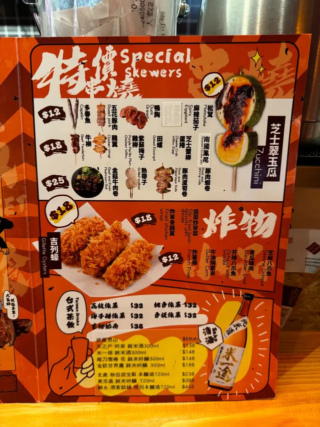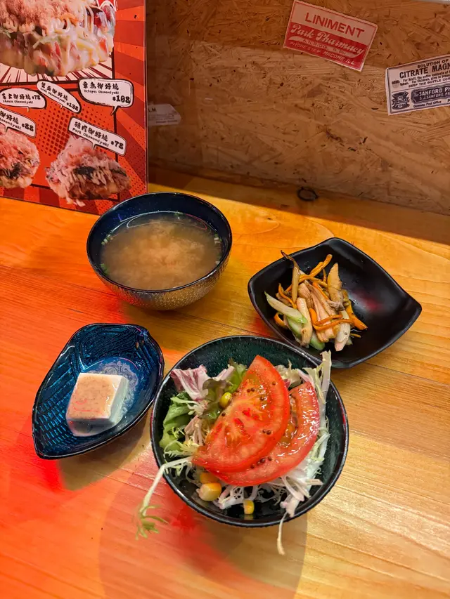 坐吧枱可以欣賞師傅手藝,晚市套餐有包括主菜、沙律、湯同小食,所以都幾抵食,再追加燒酎、串燒、御好燒,食得非常滿足。