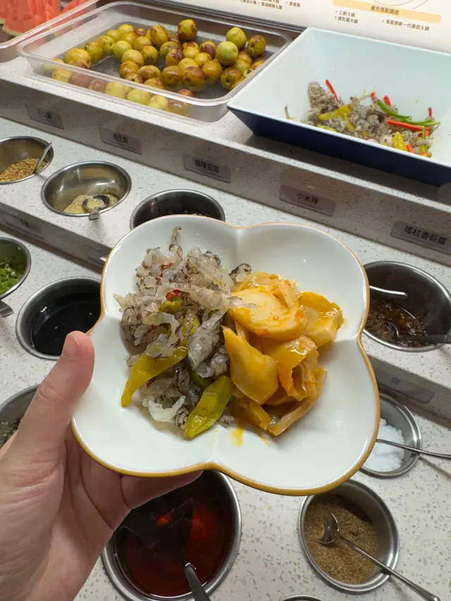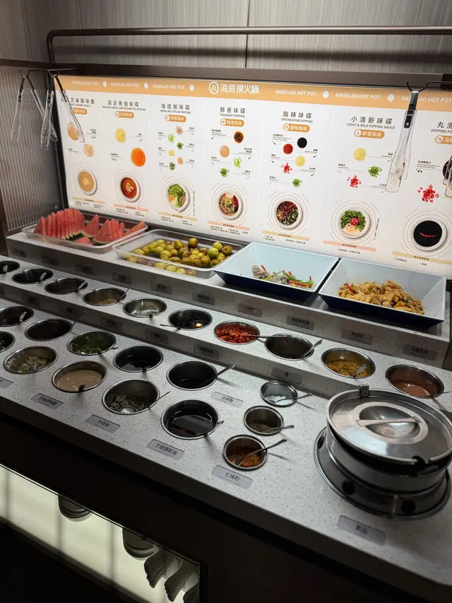 自助區會有多款調味選擇,兩款小食和少量水果,完餐後😃店員會送上果盤和甜品比客人解解辣✨✨!
