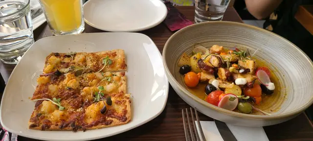 虎蝦🦐新鮮彈牙,pizza薄身脆口還有烤煙肉非常惹味,份量細左少少。