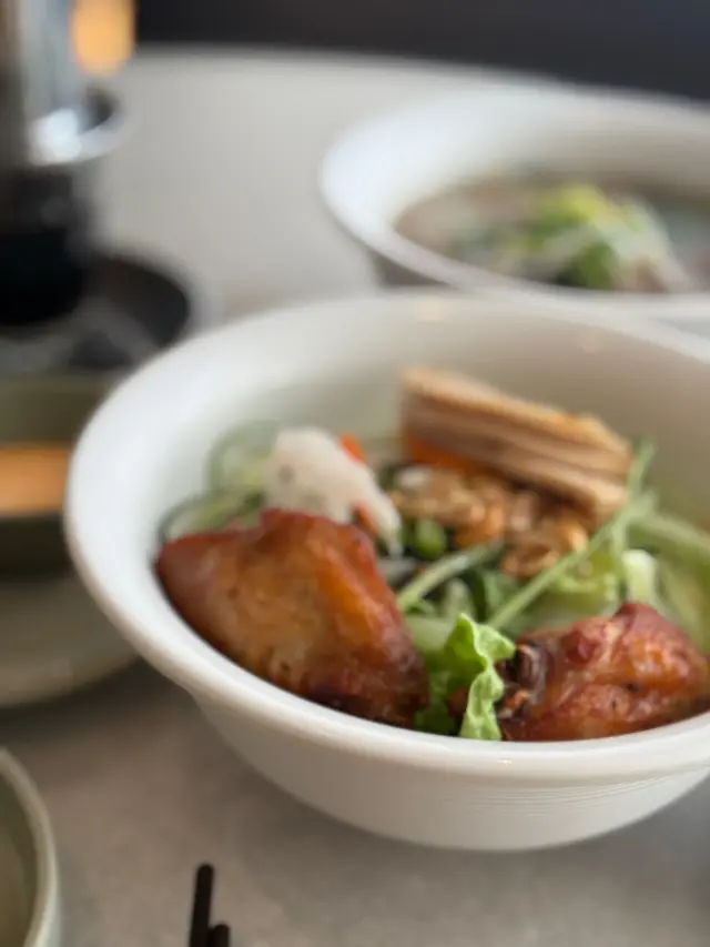 燒雞翼撈檬 🥢 — 雞翼烤得焦香微甜🔥,檬粉清爽,魚露汁酸香開胃
