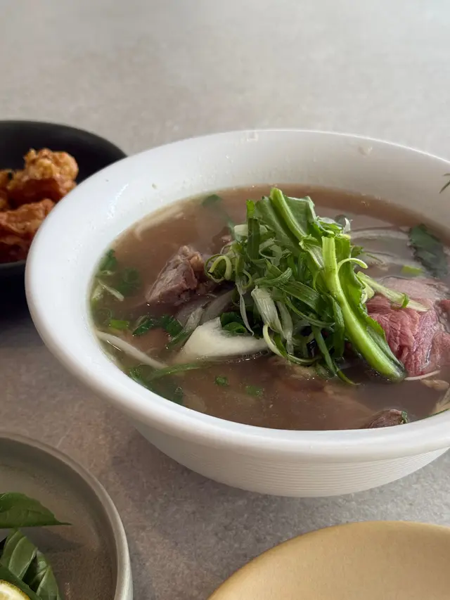 湯頭清澈卻滋味深長🌊,生牛肉片在熱湯中輕燙即熟🥩,牛爽腩彈牙有嚼勁,河粉滑順掛湯