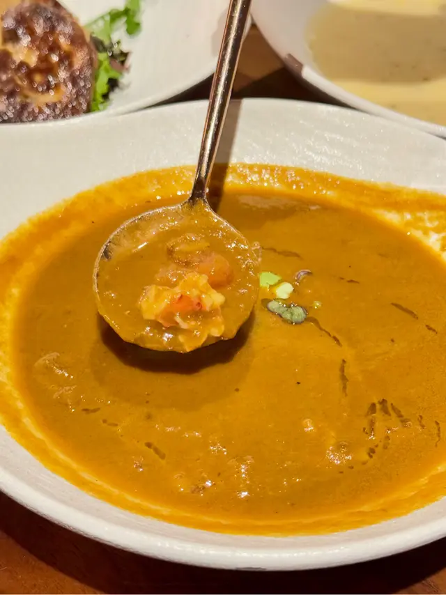 必飲「米芝蓮二星秘製龍蝦湯🦞🥣」!龍蝦湯由大廚Chef Paulo Airaudo秘製,用波士頓龍蝦頭、龍蝦精華搭配香料、高湯熬煮,龍蝦味濃郁。湯入面仲有龍蝦肉好足料。