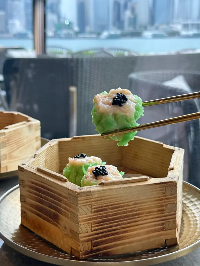 外皮綠色搶眼,頂部點綴黑色魚籽,增添矜貴感。燒賣蝦肉比例高,啖啖都食到鮮味,口感紮實。