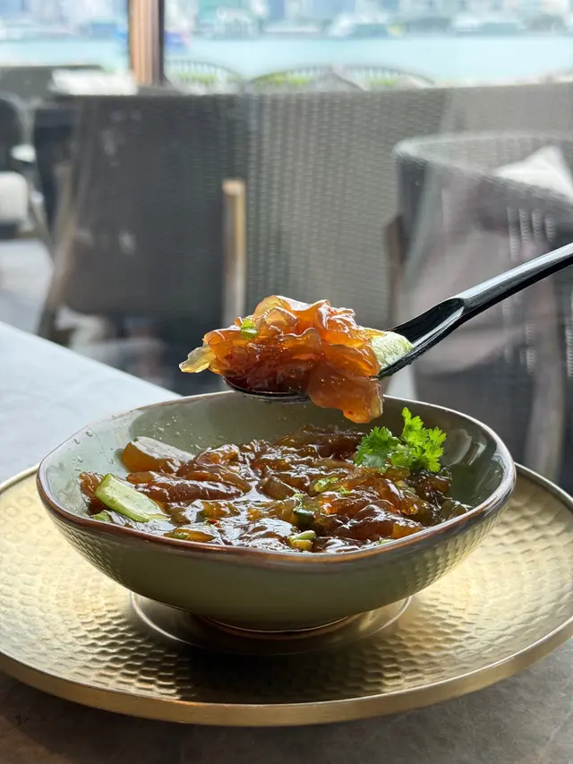 海蜇頭厚身大塊爽脆,唔似平時薄薄地一條條嗰種,配上清爽青瓜粒同酸香柚子醋,清新開胃。
