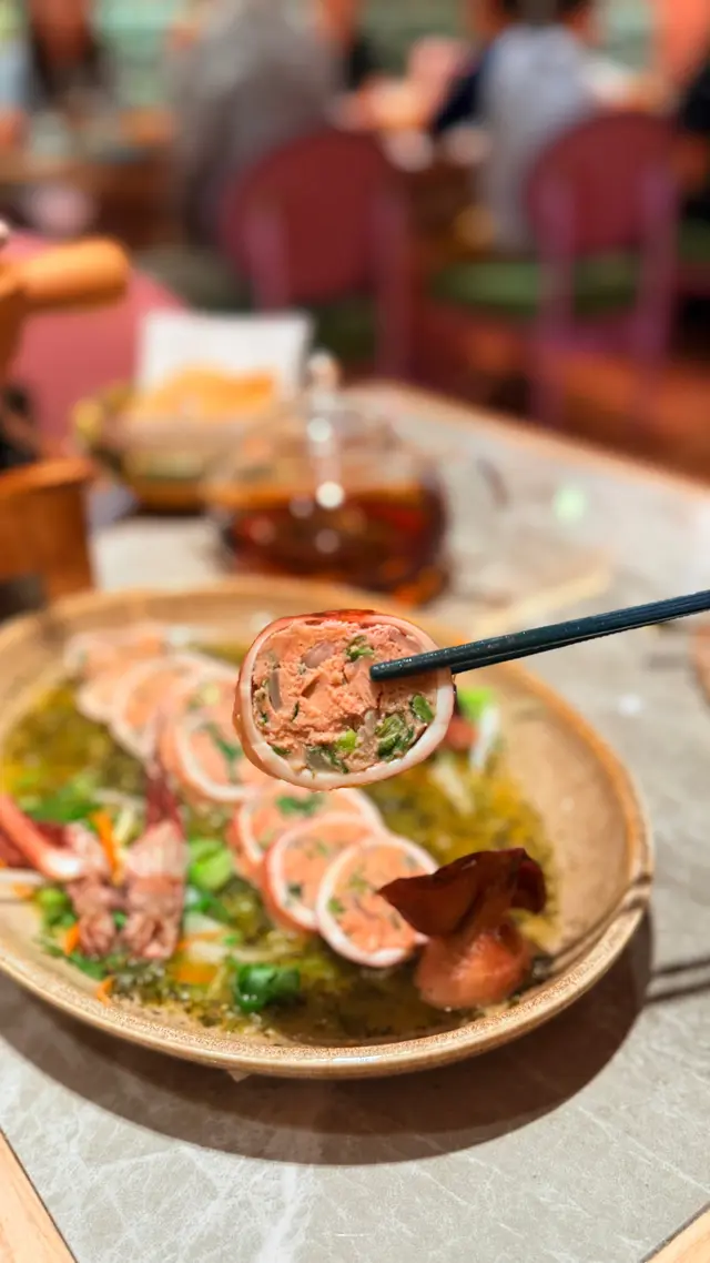魷魚肉質彈牙,用青檸汁配上同香草蒸煮,酸酸清新帶淡淡香氣,釀料用咗豬肉、洋蔥、芫茜等香料混合一齊,層次豐富得嚟味道突出,食落好清爽。