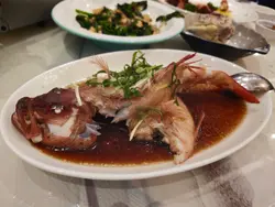 魚類菜式揀咗清蒸藍瓜子斑(一斤),魚新鮮到出汁!肉質雪白細滑,輕輕一撥就分開,淋埋熱油同豉油,鮮甜味直沖鼻腔,連魚骨邊嘅肉都好入味~