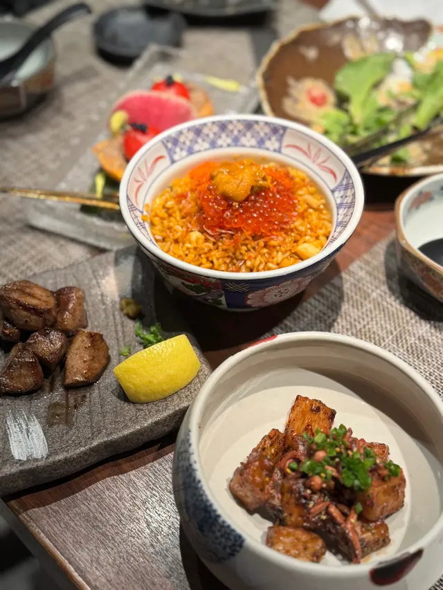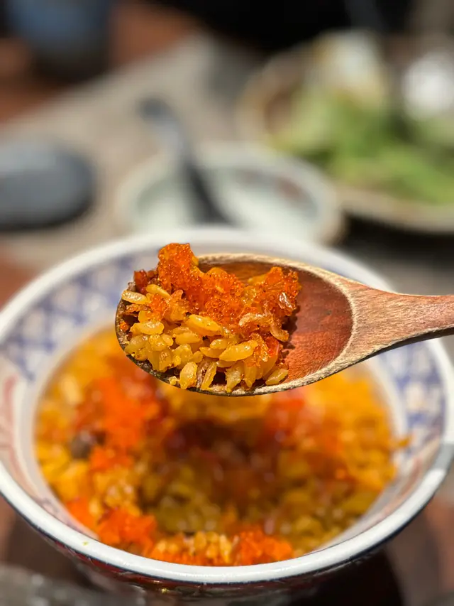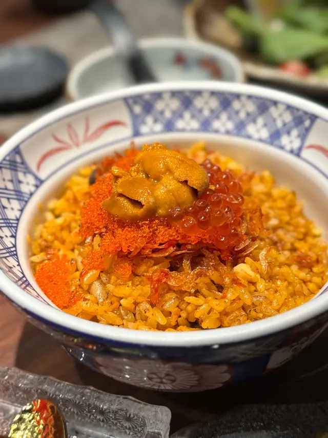 賣相與技法: 炒飯粒粒分明,色澤金黃,頂層鋪設約兩匙海膽,點綴少量蔥花。炒飯鑊氣中等,海膽鮮甜濃郁,品質不俗,但分量略顯吝嗇,與米飯拌勻後存在感稍弱。炒飯本身調味清淡,米飯乾爽度佳。
