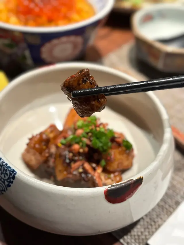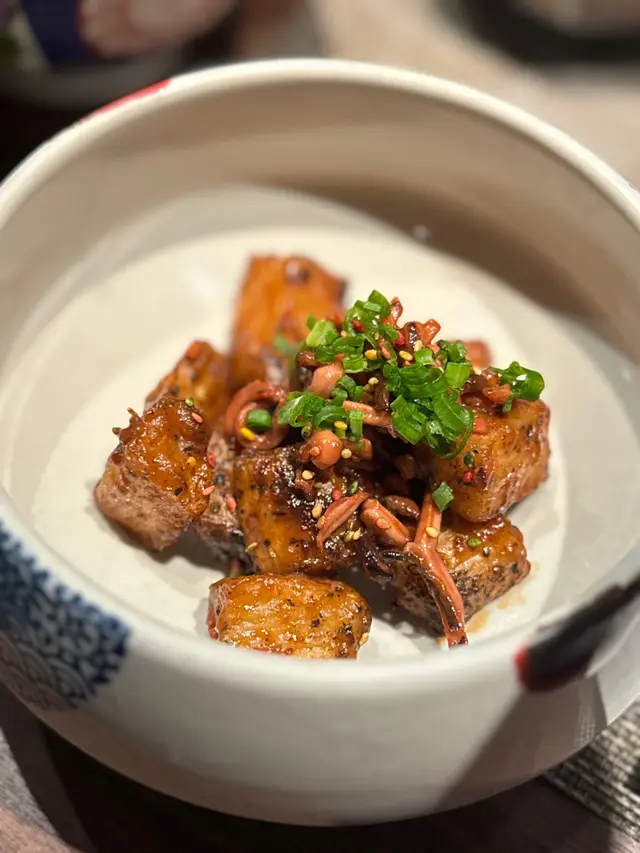 賣相與技法: 山藥切條,輕焯或生食,配以可能是梅肉或出汁醬油。山藥新鮮,黏滑脆嫩兼具,醬汁提味不搶戲。作為清口小品,表現中規中矩,但無突出記憶點。