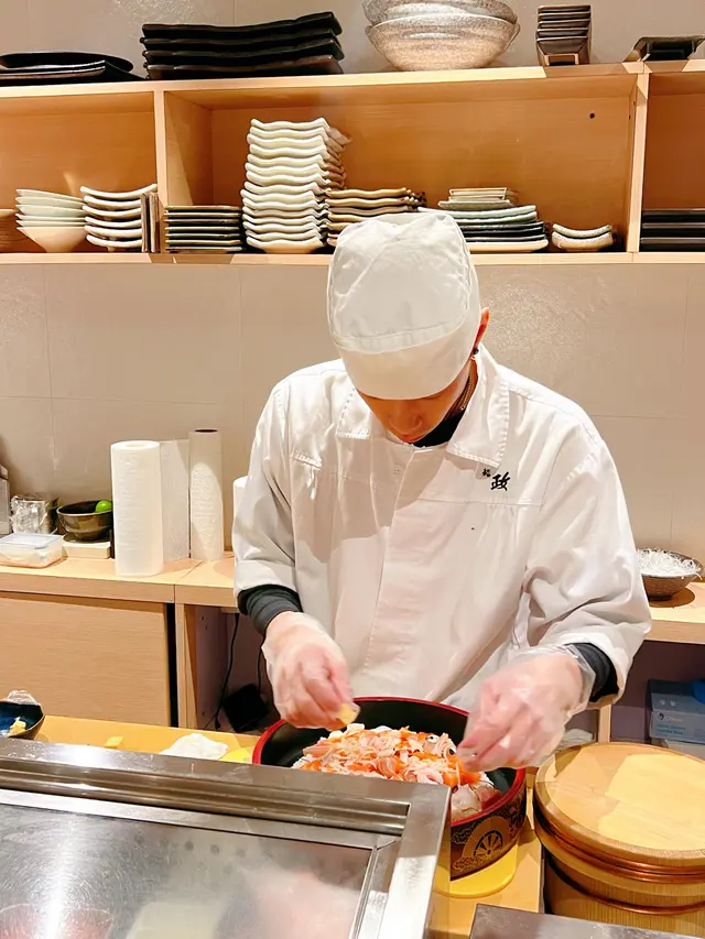 呢個超大型嘅海鮮丼每日都唔同款,廚師會用到8至10款海鮮砌成,