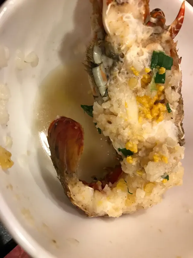 第二擊蒸龍蝦,同粥底大隻又唔同,原隻小龍蝦好爽口,仲有膏添。