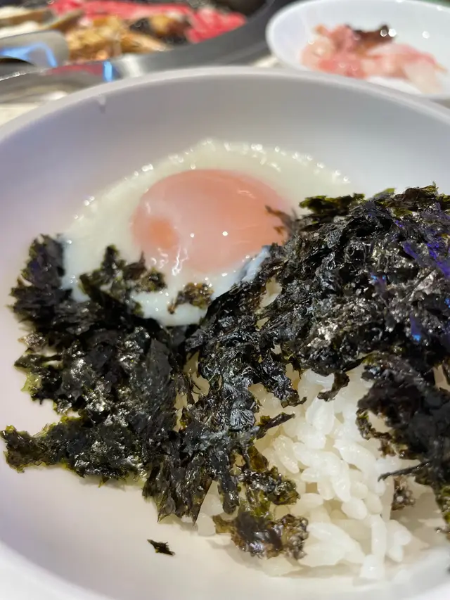 另外不得不提嘅係有白飯紫菜任裝,再配上一隻溫泉蛋,簡直係Perfect match。食燒肉食到好油膩嘅時候,食返2啖白飯,非常滿足!