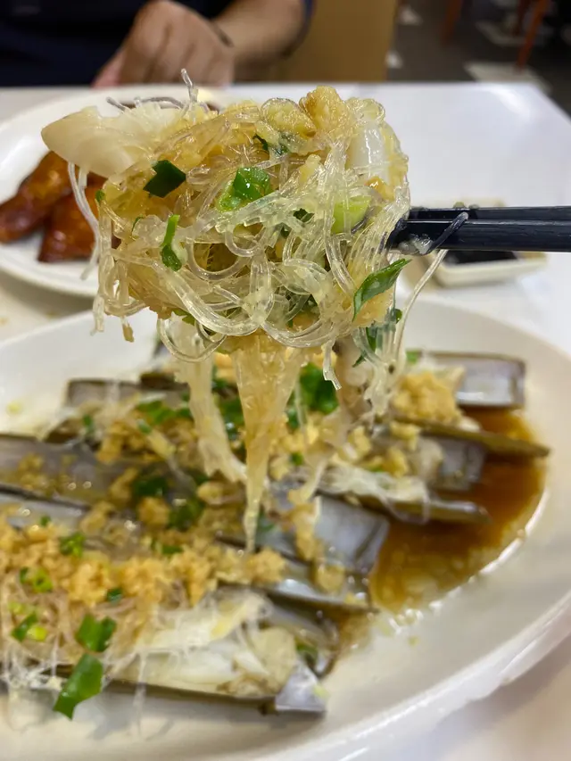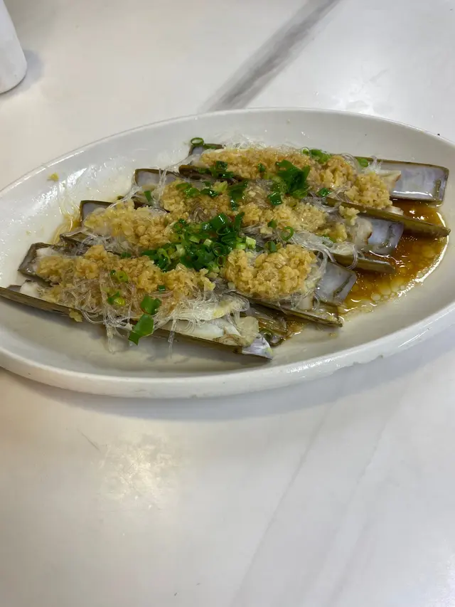 蒜蓉蒸蟶子皇,蟶子大隻肥美,蒜蓉鋪得夠厚,香氣撲鼻,蒸得啱啱好,唔會過熟,入口相當彈牙,保留咗海鮮嘅鮮味。粉絲吸晒湯汁,充滿鹹香