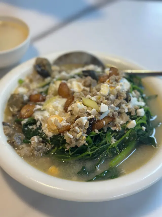 莧菜鮮嫩,金銀蛋(鹹蛋同皮蛋)嘅味道完美融合,湯底帶有蛋香,清新又解膩,係一道簡單但唔失水準嘅家常菜。