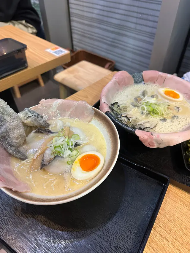 試埋鯛白湯都覺得幾出色🐟呢款同樣材料豐富,有溏心蛋+慢煮叉燒+增量鯛魚片+炸魚皮🐟 鯛白湯湯底偏向清甜,跟蠔湯嘅咸鮮有明顯分別,各有特色👍🏻 鯛魚片滑溜,冇骨啖啖肉,另外有2塊脆口魚皮浸埋魚湯一齊食都幾得意