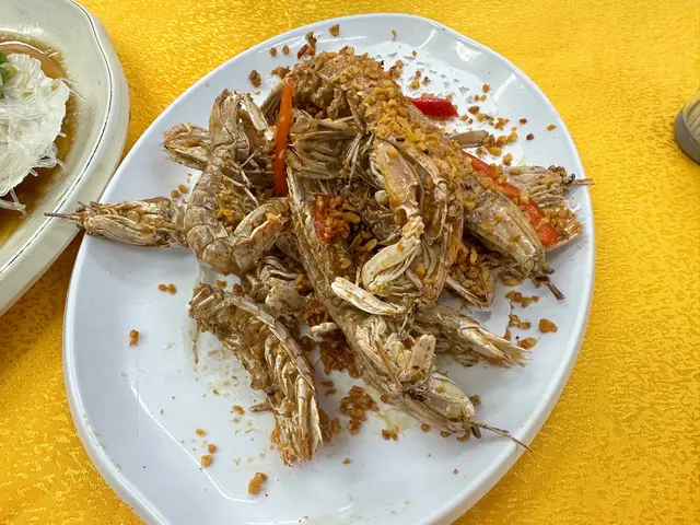 椒鹽賴尿蝦比較細隻,食落去冇乜肉,味道可以,始終係椒鹽炒,所以比較鹹。