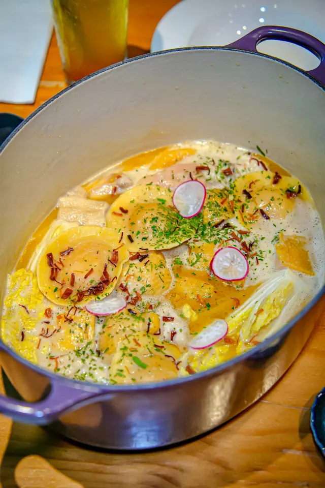 後者用咗超過70隻本地雞熬煮8個鐘而成嘅雞白湯,媲美得上日式拉麵店嘅雞白湯底,成個概念仲fusion咗中式嘅砂窩雲吞雞,