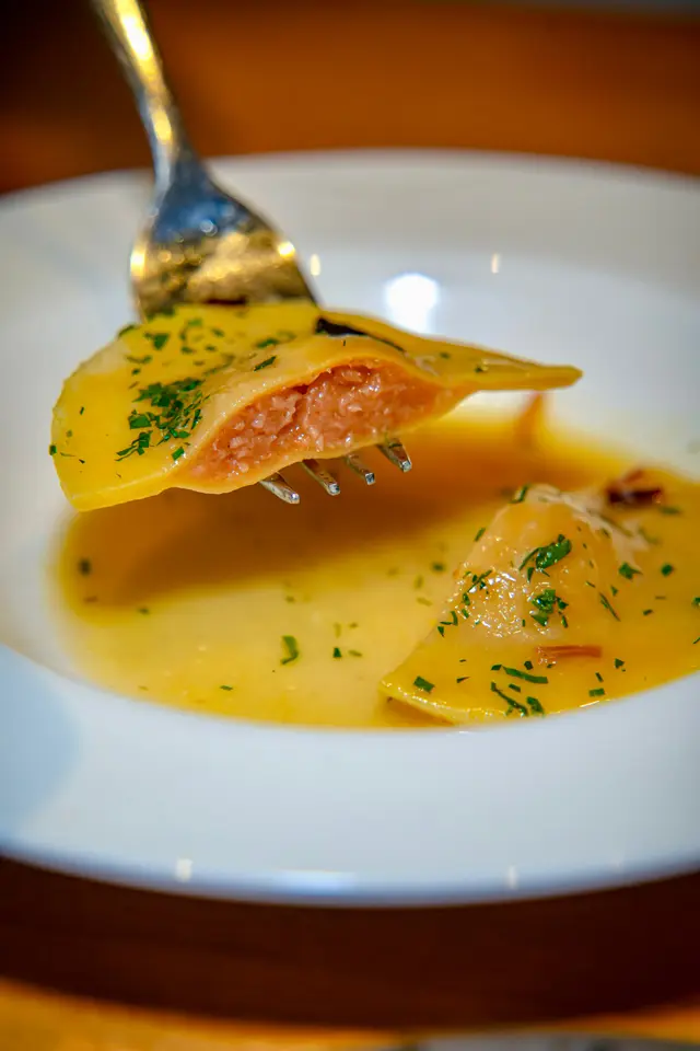當中除咗有半隻嫩滑唔嚡嘅雞隻之外🐔,仲有用Ravioli皮整成嘅意大利雲吞,