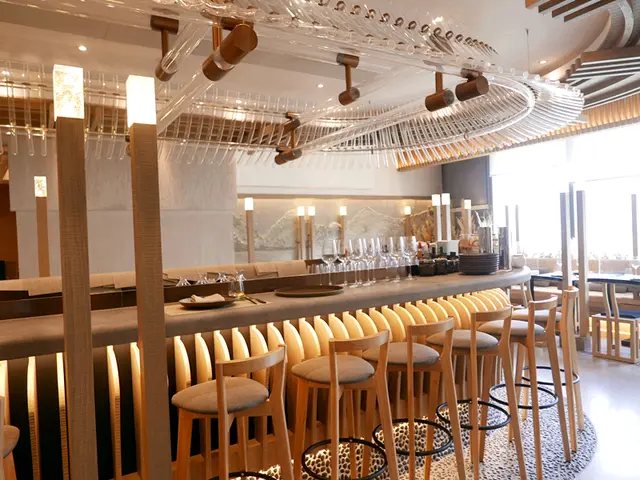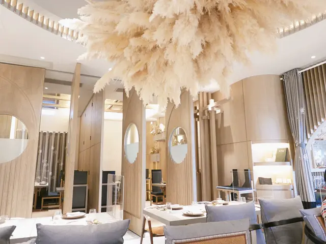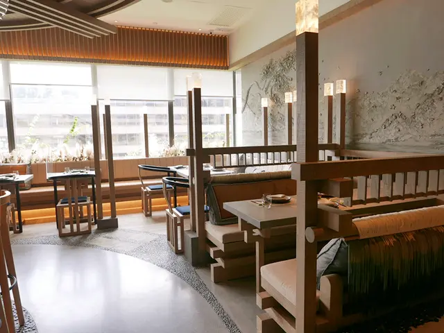 餐廳面積廣闊寬敞,超高樓底充滿空間感,以現代韓式園林風格設計,環境寧靜,簡約淡雅的原木系裝潢,格調和諧,散發濃濃禪意。